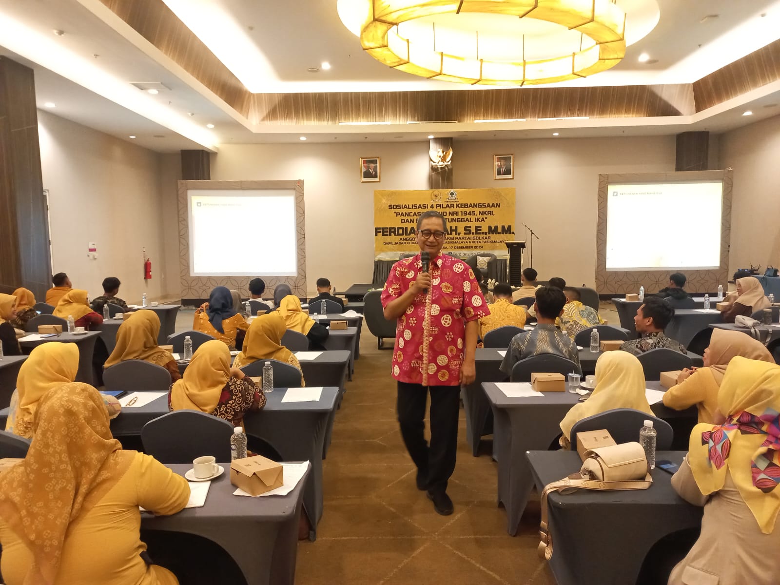 Sinar Priangan News – Garut, Anggota DPR-RI Ferdiansyah SE., MM., melakukan sosialisasi Empat Pilar Kebangsaan di fave hotel Garut pada hari Selasa pagi 17/12/124. Sosialisasi yang ditujukan kepada peserta sejumlah 150 orang peserta dari berbagai lapisan masyakat diantaranya dari kecamatan Leuwigoong, Pasirwangi, Samarang, Cigedug, Cisurupan, Cikajang, Bayongbong, Cilawu, Garut kota.
