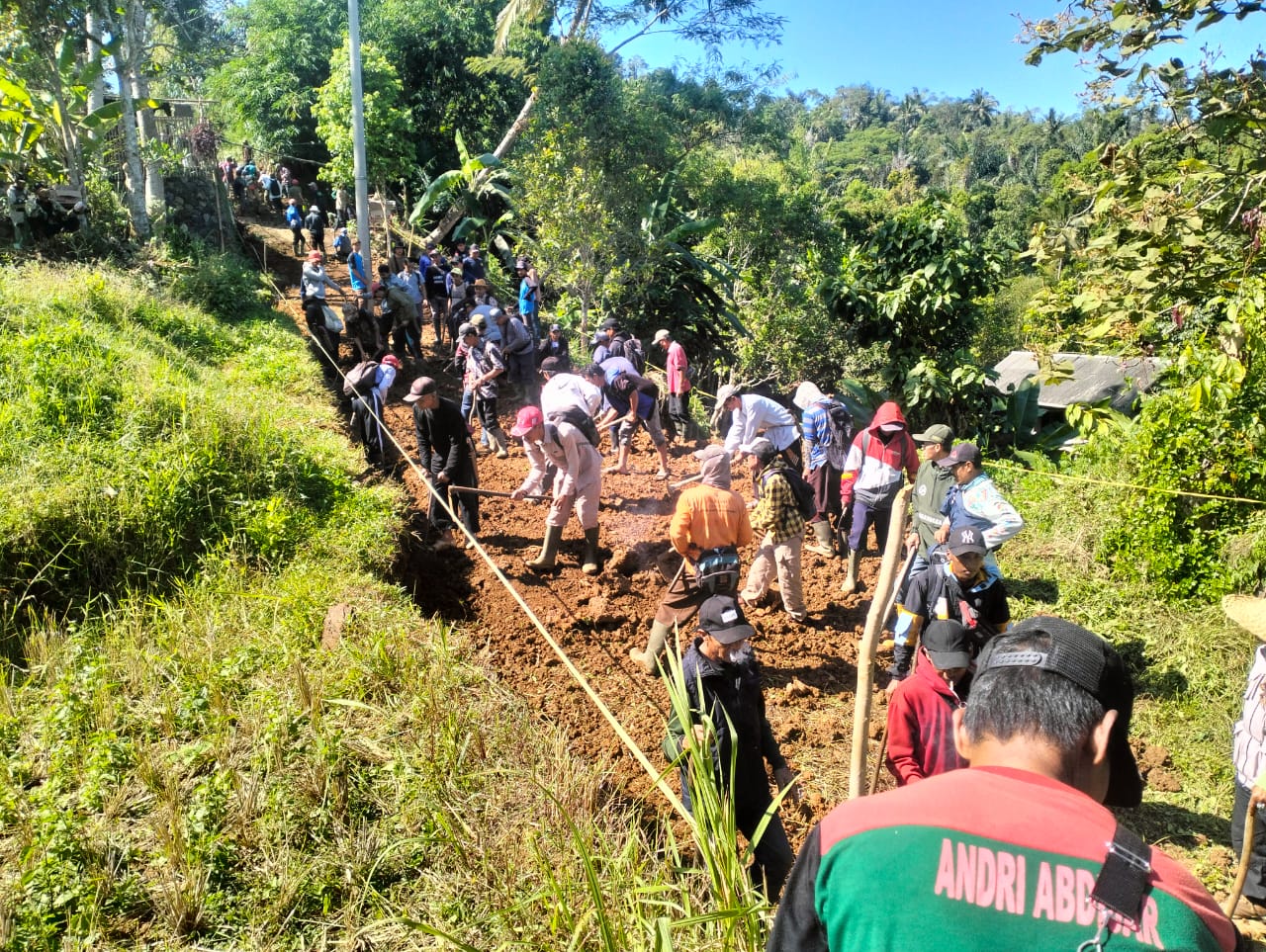 Garut, Sinarpriangan_News, Dalam rangka menyambut tahun baru Islam 1446 H, masyarakat dari berbagai daerah dibawah naungan ormas Ikatan Alumni Pesantren Al Falah (IKAPA) bekerjasama dengan Pemerintahan Desa Hanjuang Kecamatan Bungbulang Kabupaten Garut, melakukan Gerakan bakti sosial membangun jalan sepanjang 1700 m dengan lebar 4 m. Minggu 21 juli 2024.