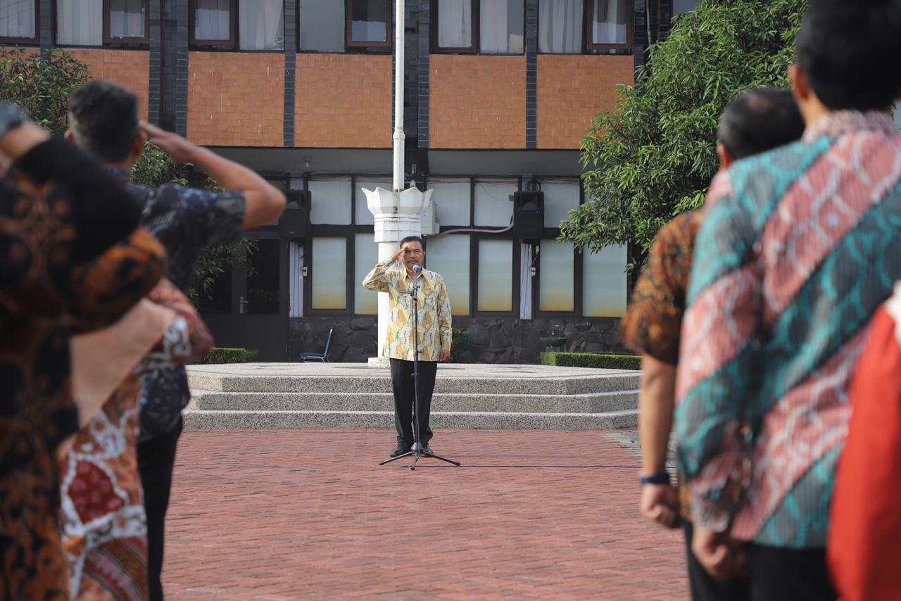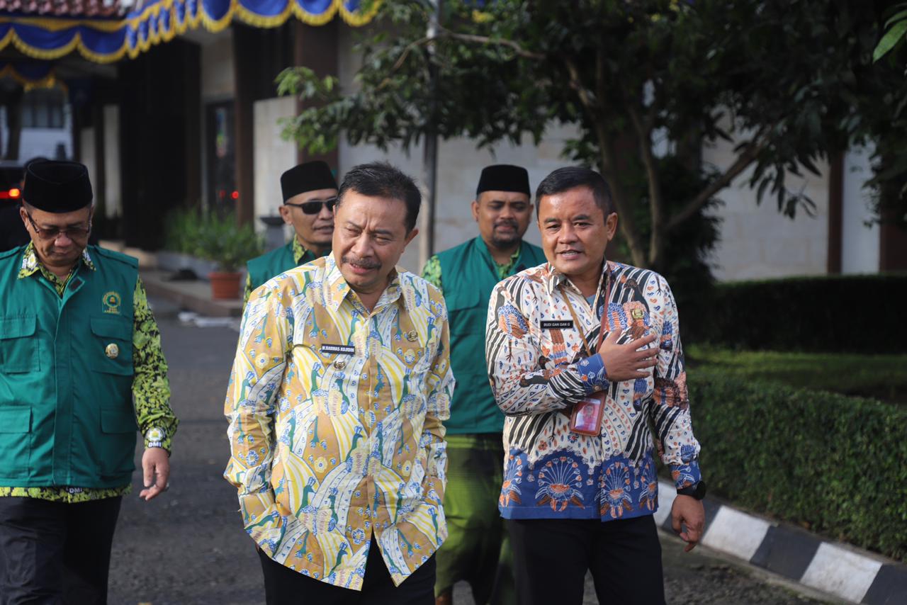 Penjabat (Pj) Bupati Garut, Barnas Adjidin, memimpin Apel pagi di Lingkup Sekretariat Daerah (Setda) Kabupaten Garut, hari Jum’at (8/3/2024). Dalam acara tersebut, Pj Bupati Garut menyerahkan secara simbolis bantuan alat kebersihan kepada Dewan Masjid Indonesia (DMI) Kecamatan se-Kabupaten Garut. Bantuan alat kebersihan ini secara simbolis diterima oleh DMI Kecamatan Tarogong Kaler, Tarogong Kidul, Sucinaraja, Samarang, dan Karangpawitan.