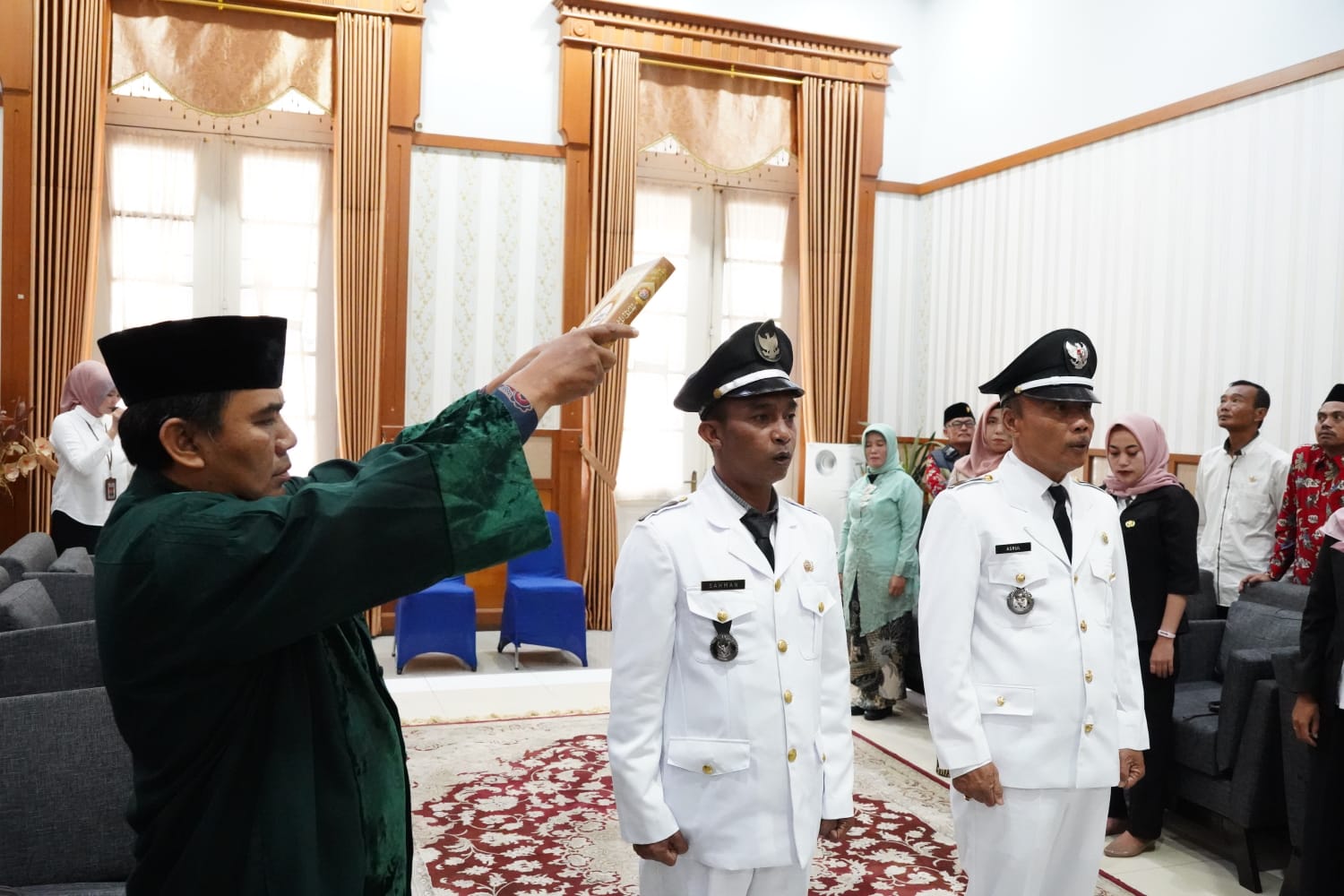 GARUT, Sinarpriangan.com – Bupati Garut, Rudy Gunawan, melantik dua Kepala Desa Pergantian Antar Waktu (PAW) di Ruang Pamengkang, Kecamatan Garut Kota, Kabupaten Garut, pada Rabu (1/11/2023). Dua kepala desa yang dilantik, yaitu Asrul sebagai Kepala Desa Mekarsari, Kecamatan Karangpawitan menggantikan kades sebelumnya yang meninggal dunia, dan Syahman sebagai Kepala Desa Sukamulya Kecamatan Talegong menggantikan pendahulunya yang maju dalam pencalonan legislatif.