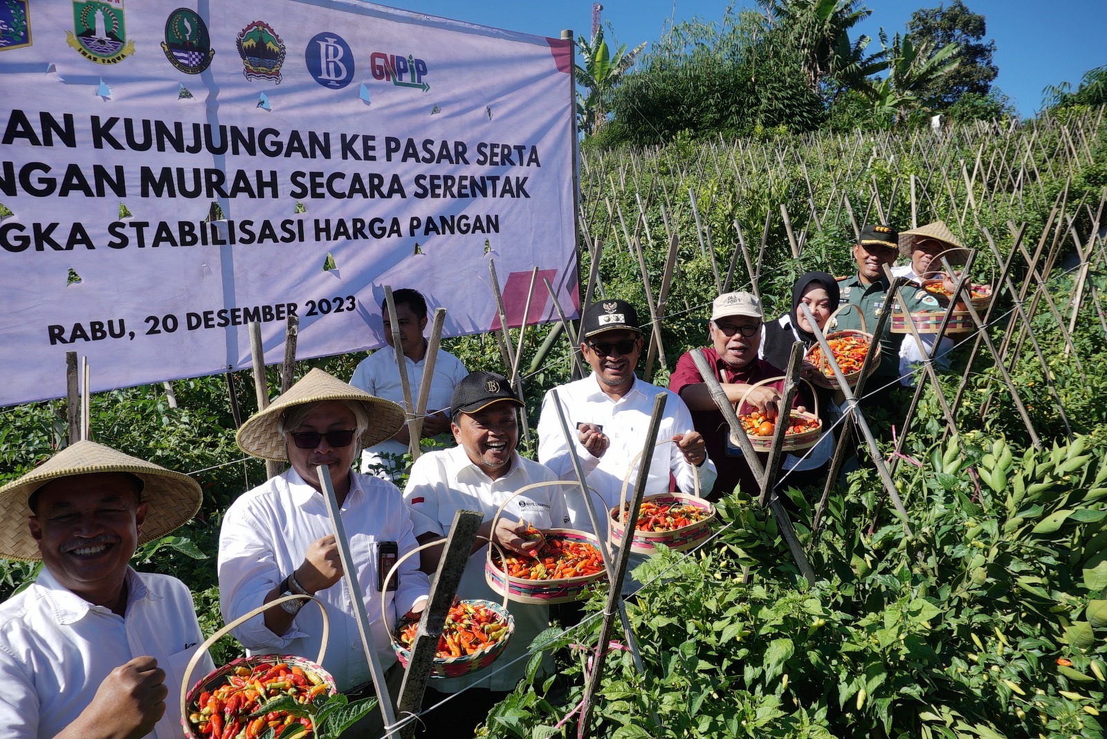GARUT, SinarprianganNews- Kabupaten Garut jadi salah satu lokasi pelaksanaan Panen Cabai Serentak sebagai tindaklanjut dari High Level Meeting (HLM) Tim Pengendalian Inflasi Daerah (TPID) yang dihadiri oleh Pj Gubernur DKI Jakarta, Banten, Jawa Barat, dan Jawa Tengah pada tanggal 29 November 2023 lalu. Sehingga acara ini diikuti secara daring oleh Pemerintah Provinsi (Pemprov) DKI Jakarta, Banten, Jawa Barat, Jawa Tengah, dan beberapa provinsi lain yang menjadi tamu undangan dalam acara ini.