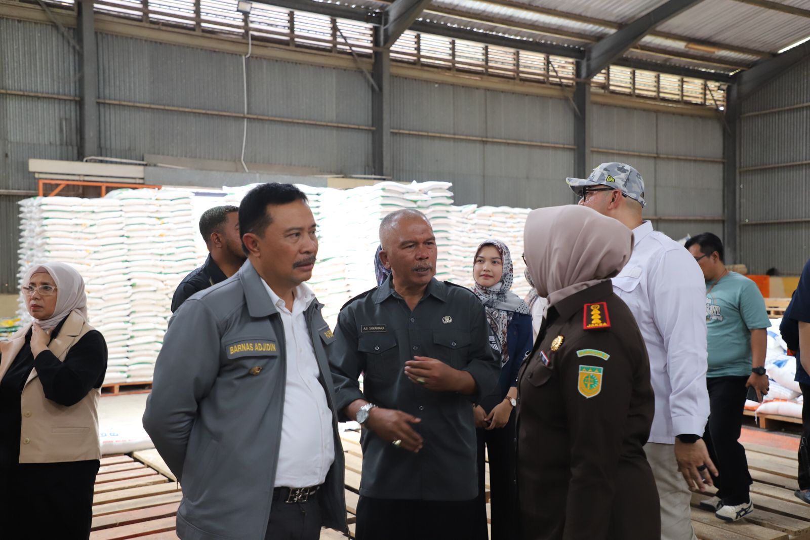 Penjabat (Pj) Bupati Garut, Barnas Adjidin, mengecek secara langsung ketersediaan beras di Gudang Bulog