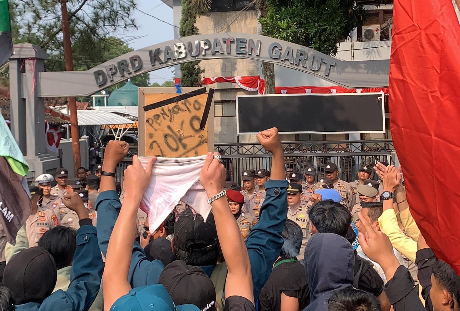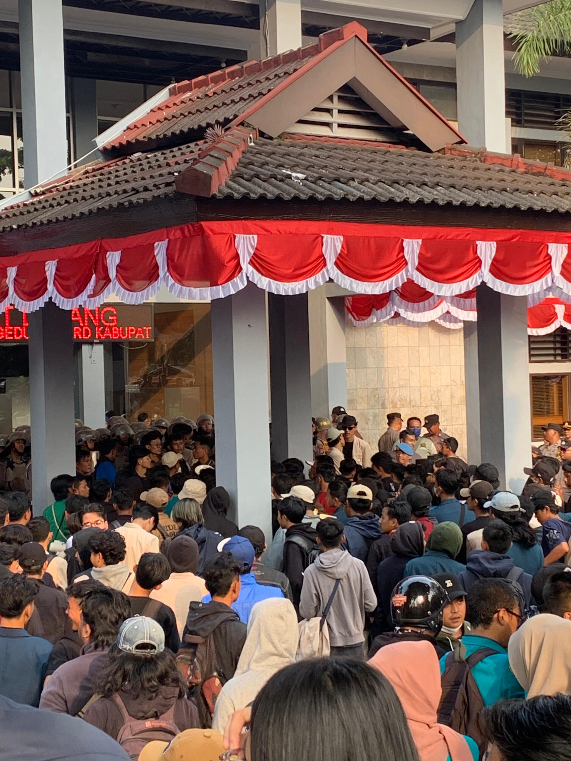 “Mahasiswa menolak hanya mengirimkan 50 perwakilan untuk berdialog di dalam gedung DPRD karena kami merasa langkah ini hanya upaya untuk meredam suara kami tanpa benar-benar mendengarkan substansi dari aspirasi yang ingin kami sampaikan,” ungkap Ahmad Fajar.