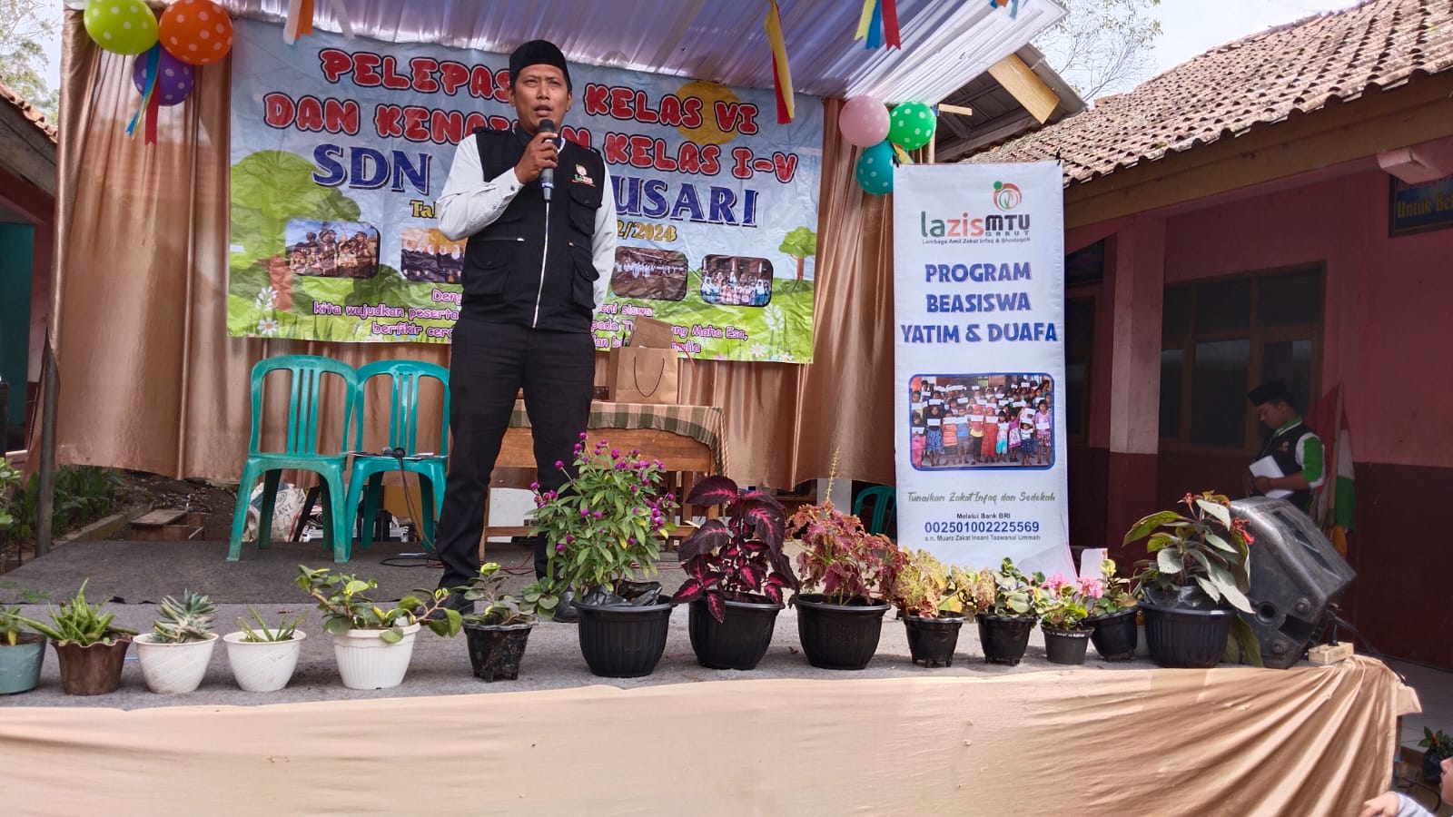 Lazis MTU yang beralamat di Jl. terusan samarang , komplek bumi praja Desa Rancabango Kec. Tarogong Kaler telah mengadakan Program Beasiswa 1000 santunan pendidikan bagi Yatim dan Duafa dan hari ini Selasa 25 Juni 2024. LAZIS MTU telah mendistribusikan ke beberapa wilayah di Kab. Garut yang terbagi menjadi empat tim. Yang mana untuk tim satu Tepatnya di wilayah kecamatan Pasirwangi Desa Barusari yang bertempat di SDN 4 Baru sari, bertepatan acara pelepasan dan kenaikan kelas I-V.