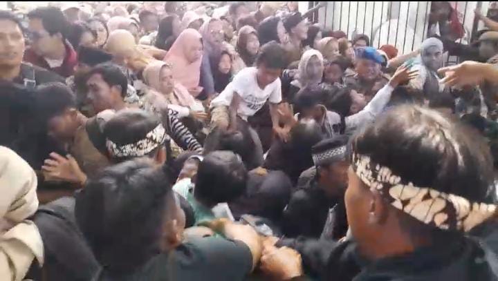 Acara yang digadang-gadang sebagai perhelatan mewah itu justru berakhir dengan kepanikan massal. Sejak pagi, warga sudah memadati lokasi di kawasan Babancong, Pendopo dan Alun-alun Garut, bukan hanya untuk menyaksikan prosesi pernikahan saja, melainkan juga mengincar janji makan gratis. Tanpa pengamanan yang memadai, suasana cepat berubah kacau ketika ribuan orang saling dorong dan berdesakan di gerbang pintu.