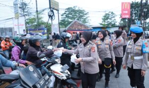 Garut, Sinarpriangan News-Raih Berkah Bulan Suci Ramadhan, Polwan Polda Jabar membagikan takjil gratis kepada masyarakat pengguna jalan, tepatnya di jalan Gedebage Soekarno Hatta Bandung, Jum’at sore (22/3/2024).
