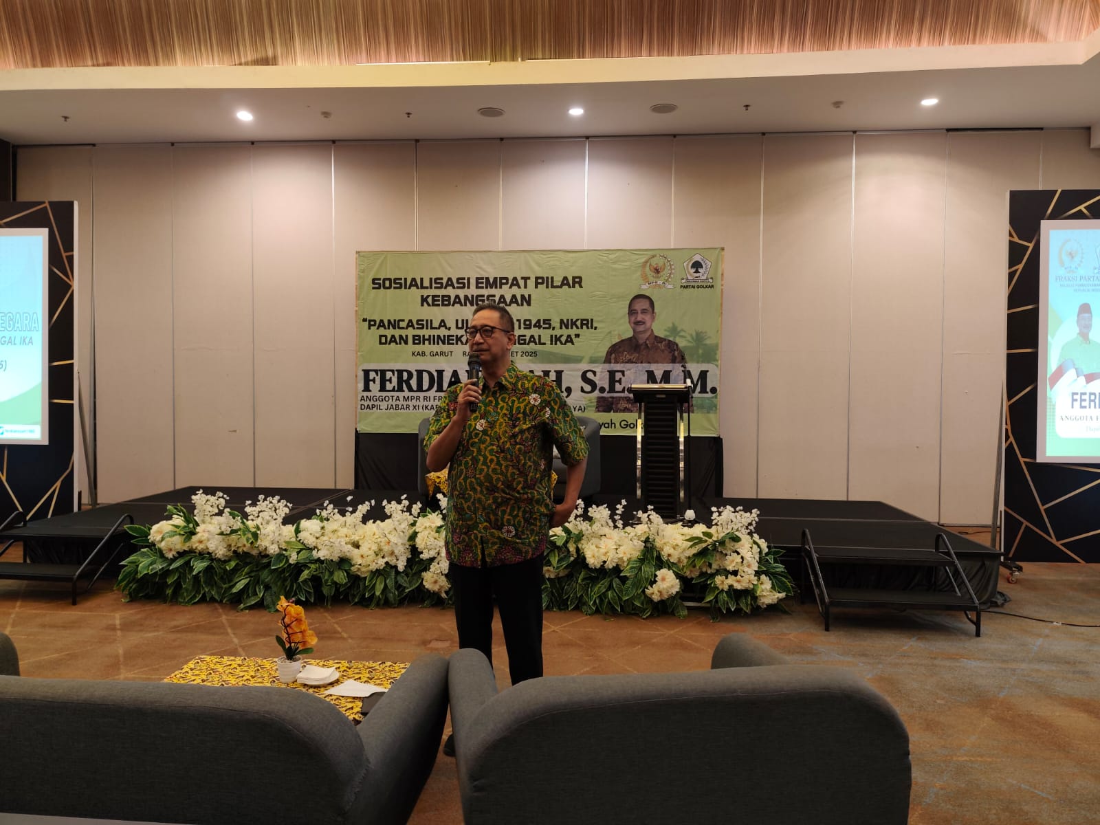 Sinar Priangan – Garut, Sekertaris Fraksi Partai Golkar MPR RI yang sekaligus Anggota Komisi X DPR RI Dapil Jabar XI, Ferdiansyah SE., MM. menggelar sosialisasi empat pilar kebangsaan sekaligus menyerap aspirasi masyarakat. Dalam kegiatan yang diselengarakan di hotel Fave Garut pada hari Rabu, 12/3/25 Sesi pagi. Kegiatan tersebut dihadiri oleh masyarakat dari kec. Kadungora, Tarogong Kidul dan kaler, Cilawu, Karangpawitan, Bayongbong Cisurupan, Samarang, Sucinaraja.