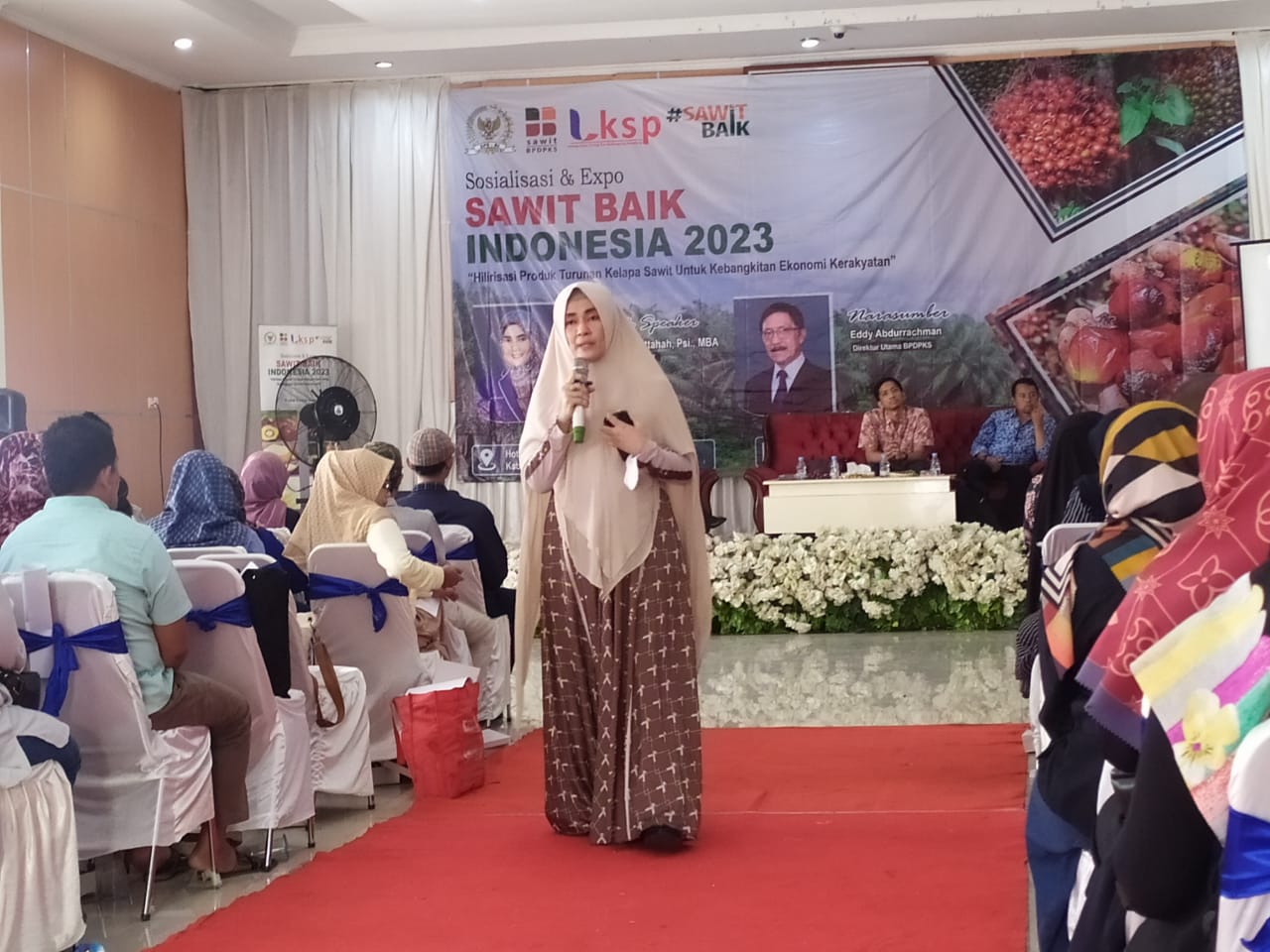 Dalam sosialisasi ini, Siti Mufattahah mengambil sub tema mengenai ” Hilirisasi Produk Turunan Kelapa Sawit untuk Kebangkitan Ekonomi Kerakyatan”.