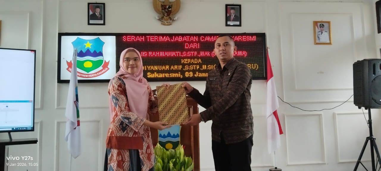Dalam prosesi tersebut, Camat lama Hj. Iis Rahmawati, S.STP., M.Ak., secara resmi menyerahkan tugas dan tanggung jawab kepada Prayudi Yanuar Arif, S.STP., M.Si., yang kini ditetapkan sebagai Camat Sukaresmi yang baru.